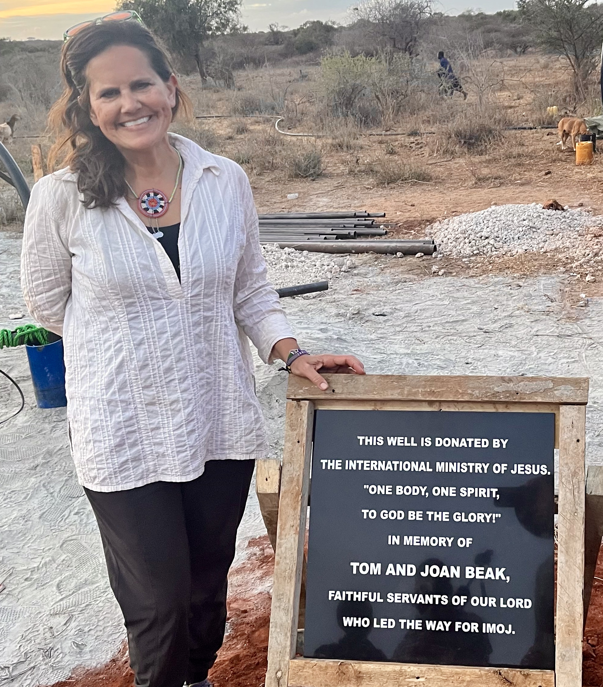 Well Dedication: A team of six people led by Anne-Marie Touliatos (Director of IMOJ) traveled from the USA to Tanzania for the dedication of the well. The team members included Joey and Stephanie Turman, Trey and Kim Martindale and Catalino Muñiz.