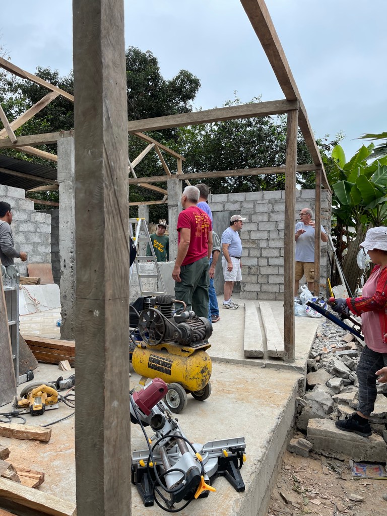 The local churches prepare the beginning structure by pouring the concrete floor, placing support poles and securing the roof. then teams come and finish the rest (walls, electrical, plumbing, tiling etc.). Plans are in place to build two more houses in 2023.